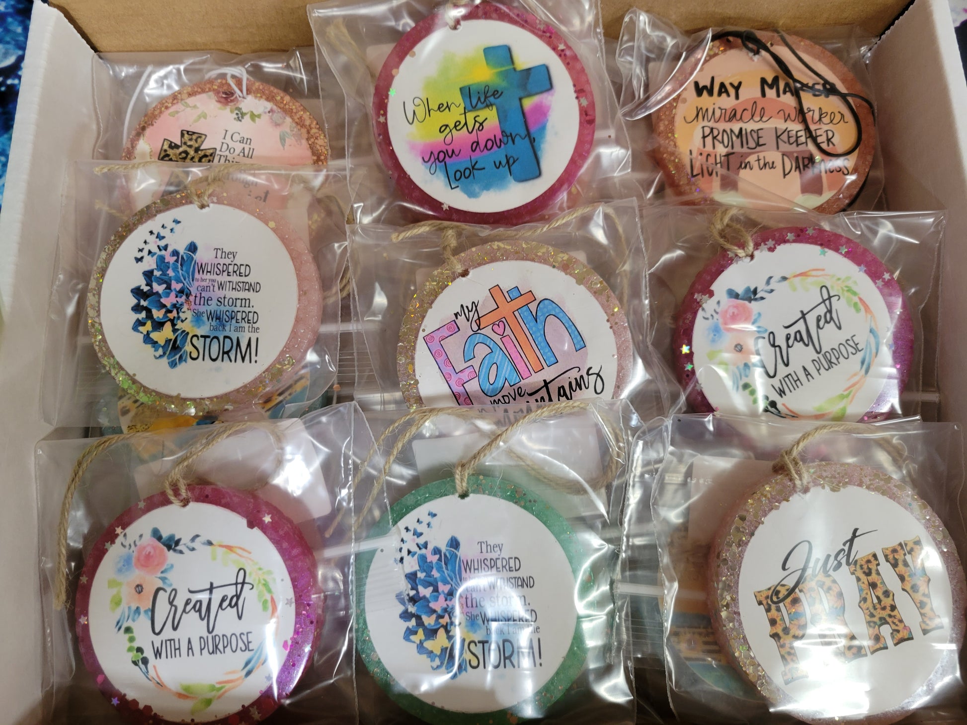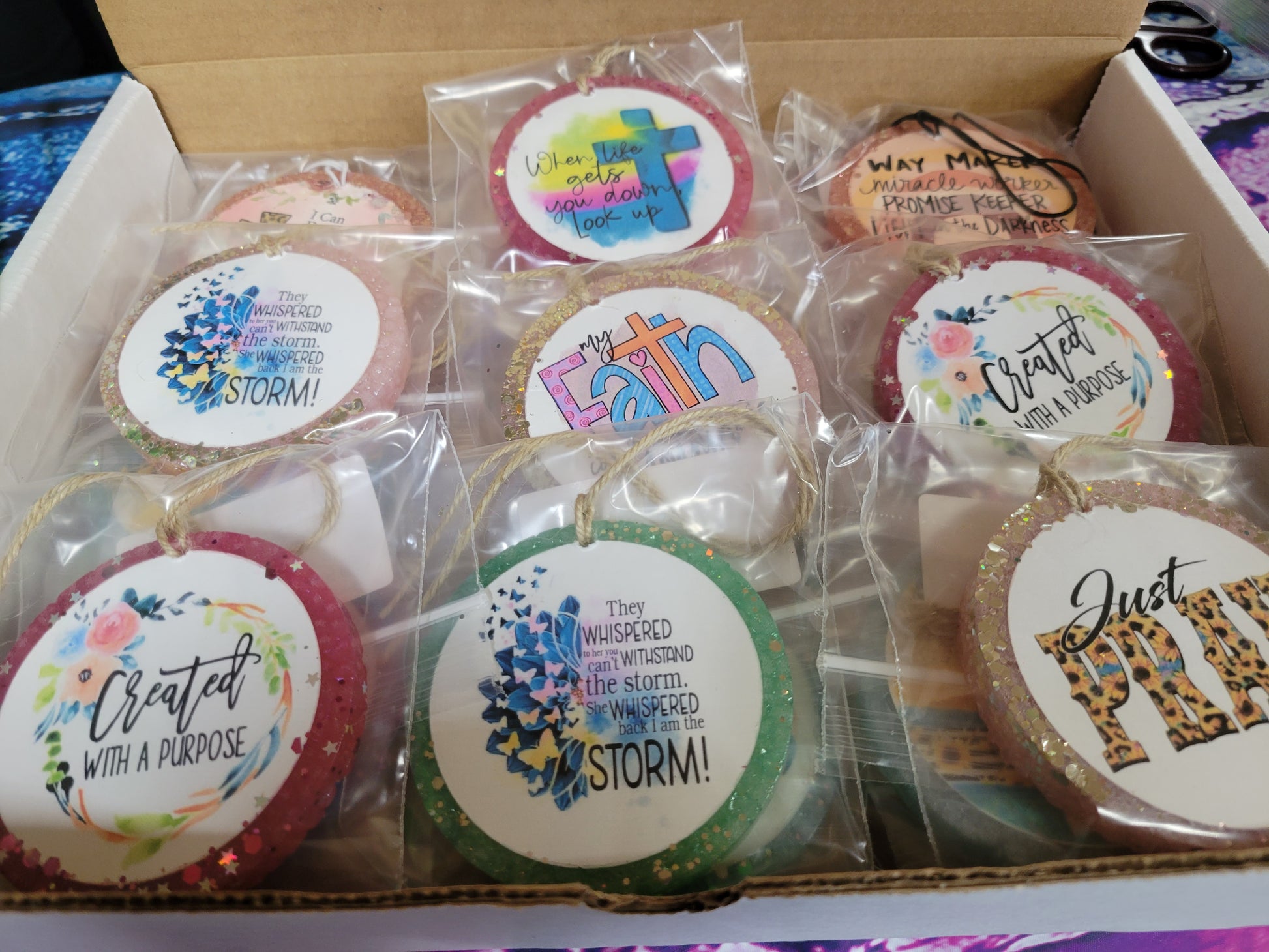 For your consideration is our Religious themed vendor box. You will recieve 20 various scents and colors. Each freshie will be individually wrapped and plain scent labeled.